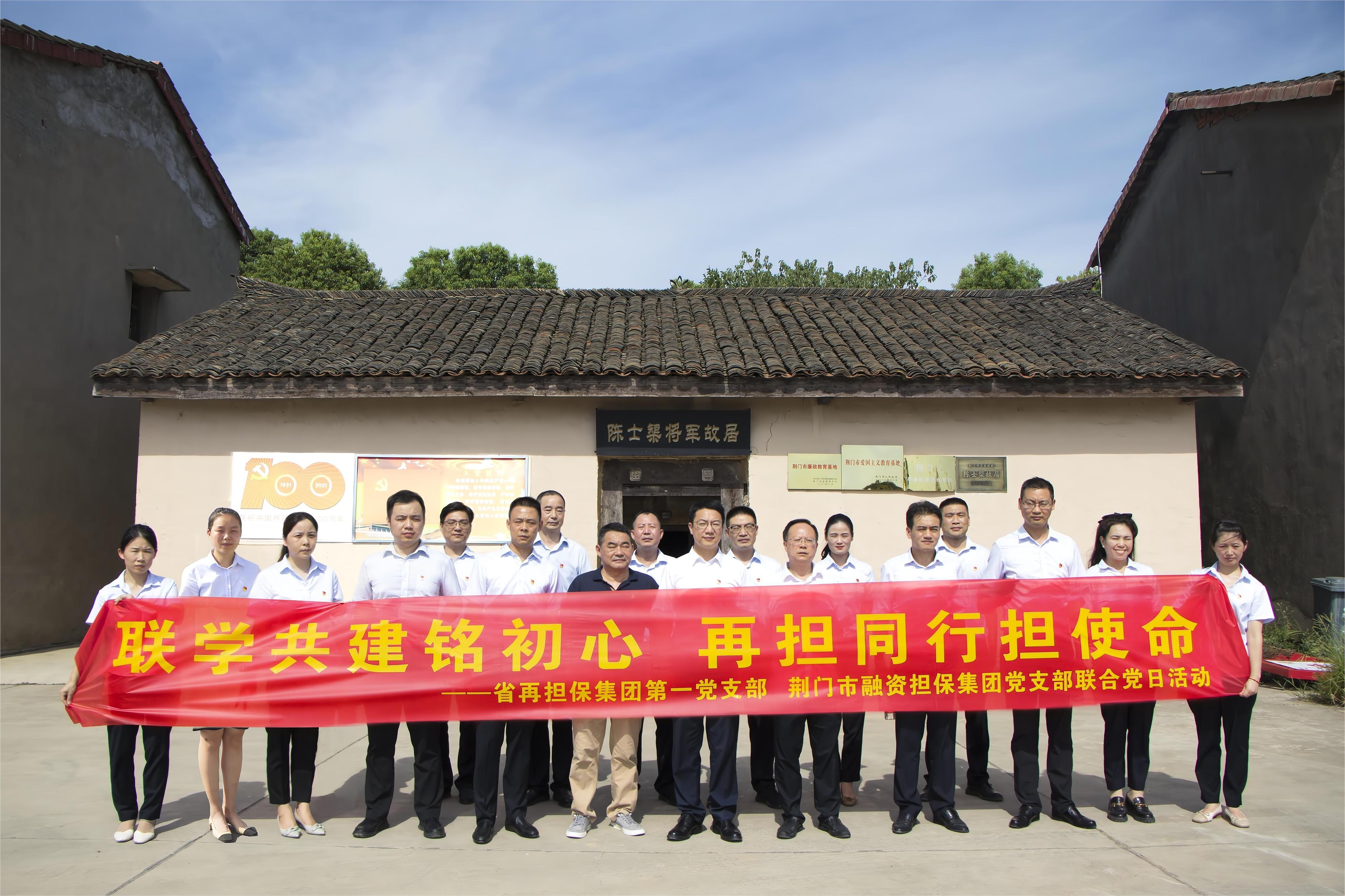 8月10日,省再担保集团第一党支部与荆门市融资担保集团党支部以“联学共建铭初心、再担同行担使命”为主题,联合开展8月份主题党日活动。省再担保集团党委书记、董事长张龙,市财政局党组成员、工会主席肖中华,市融资担保集团党总支书记、董事长熊双舫参加活动。 两个支部共20余名党员参观了荆门市陈士榘将军故居...